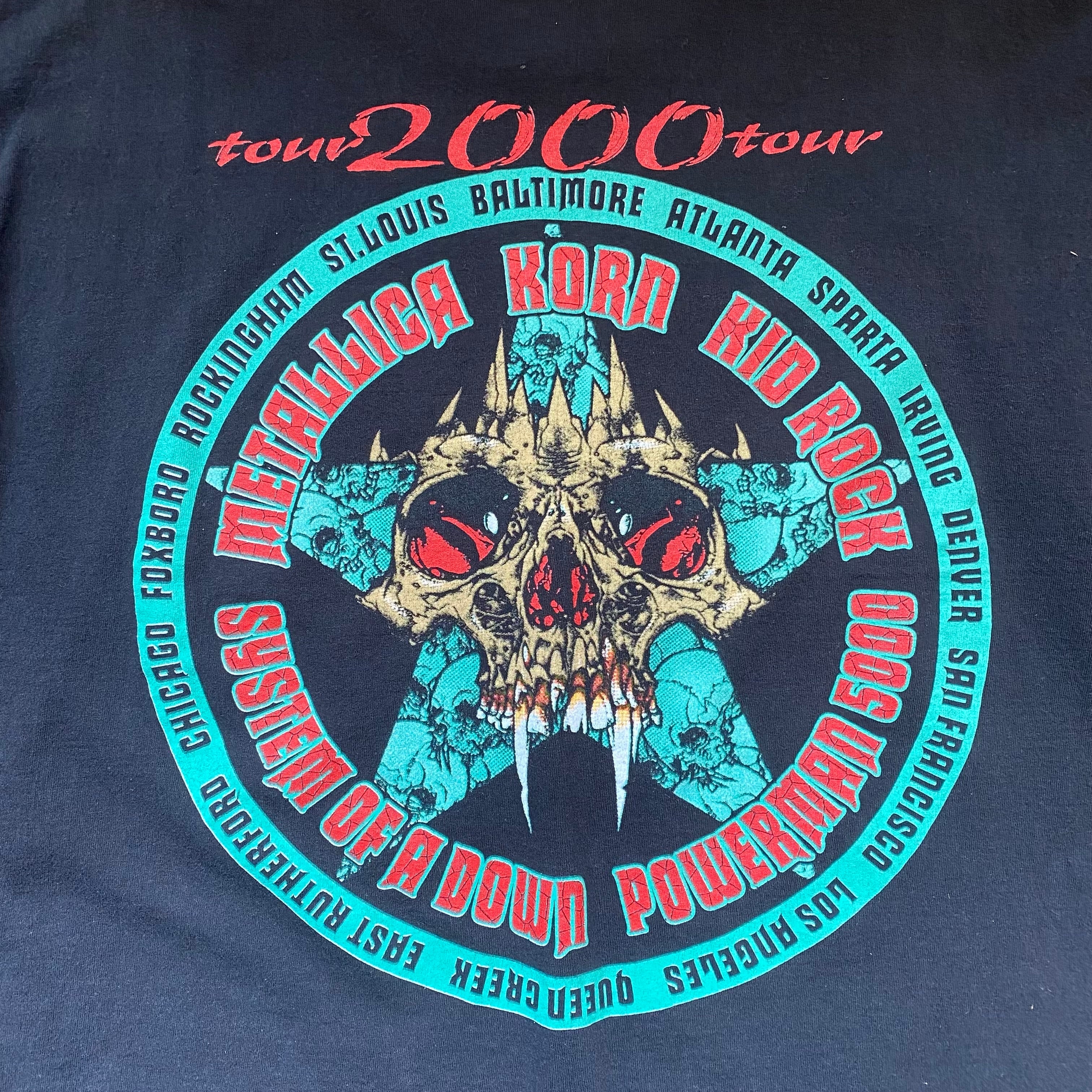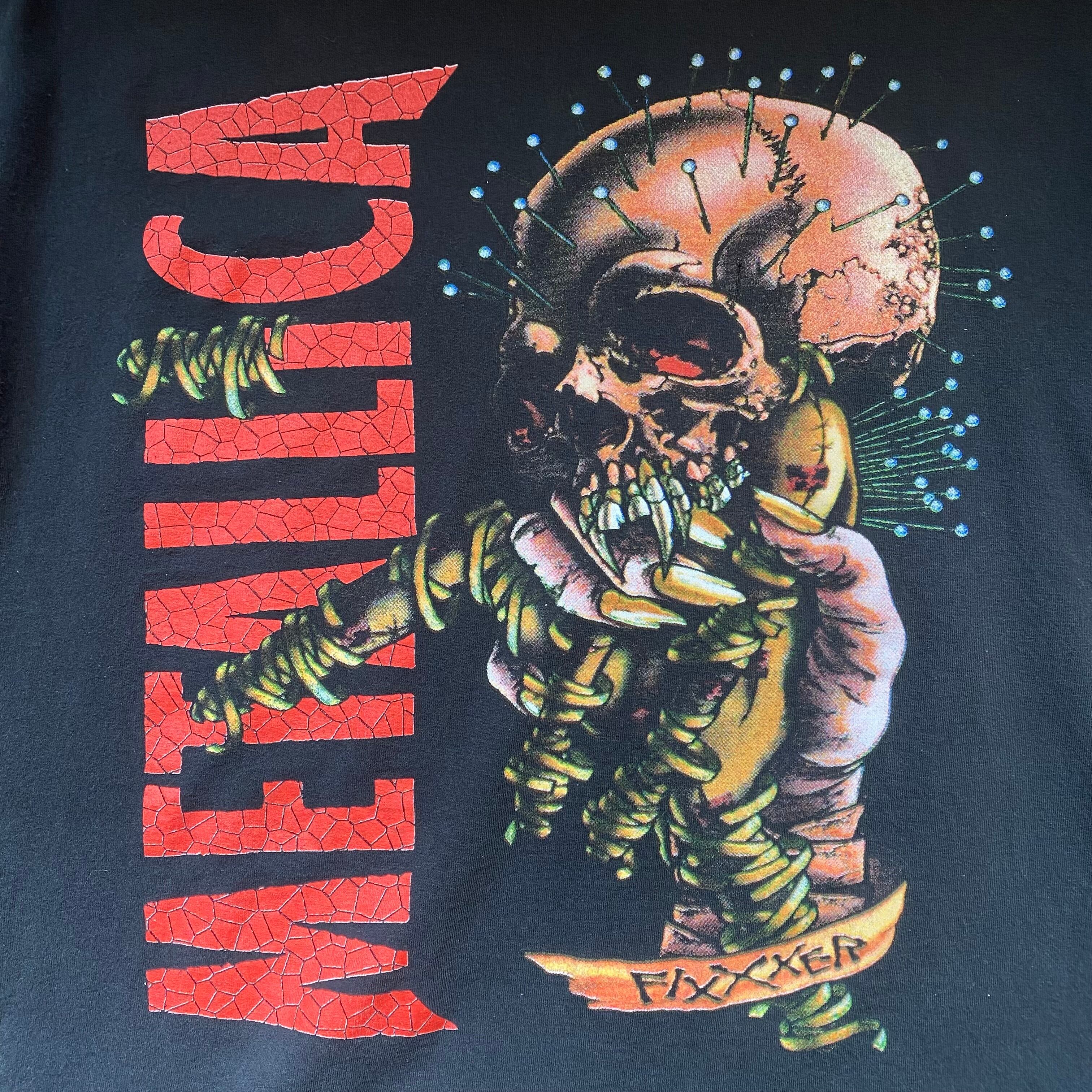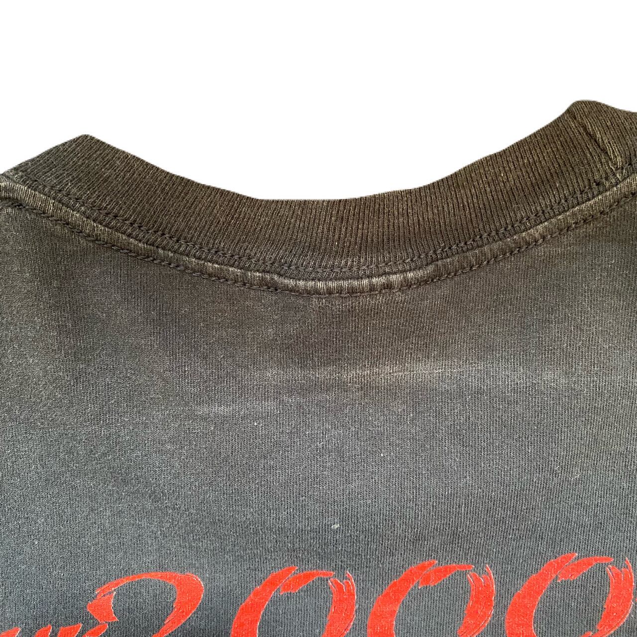 サイズ表記はないですが、おそらくL程度の大きさになります。両面にインパクトのあるプリントに加えて、状態共に素晴らしい商品です。