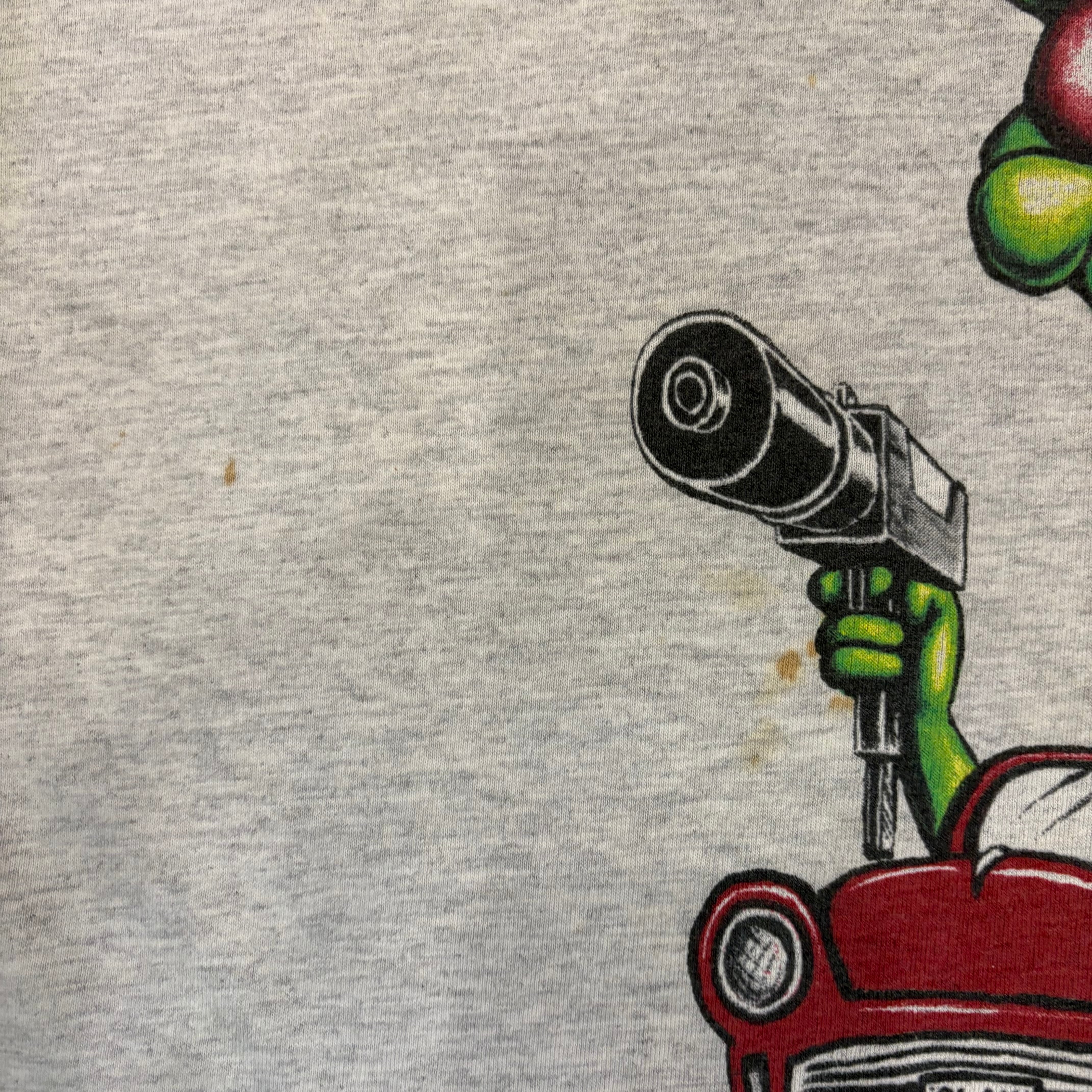 首元.プリント横等に薄汚れ.フロントプリント部にホール