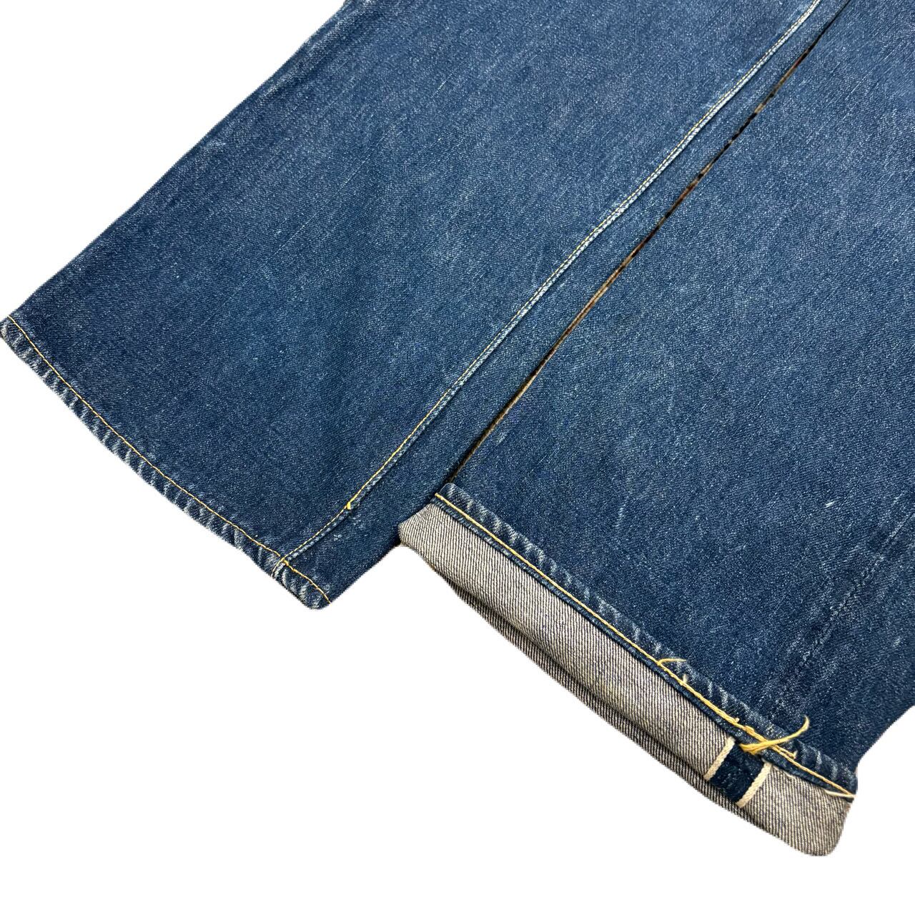 アーキュエイト部分など所々にステッチ抜けはありますが、致命的な箇所はございません。小さな小穴もありますが全体的に色残りもありコンディションの良いパンツです。