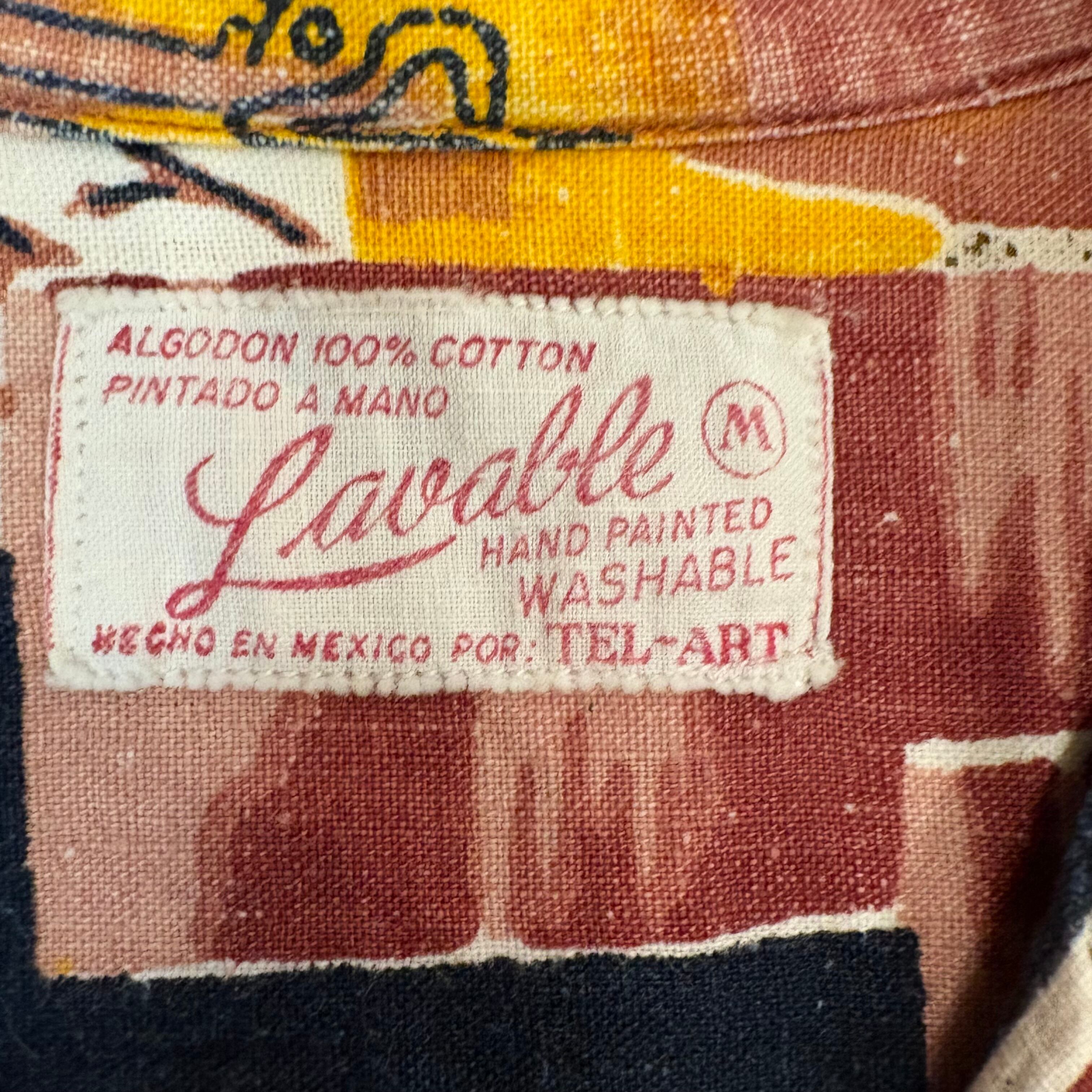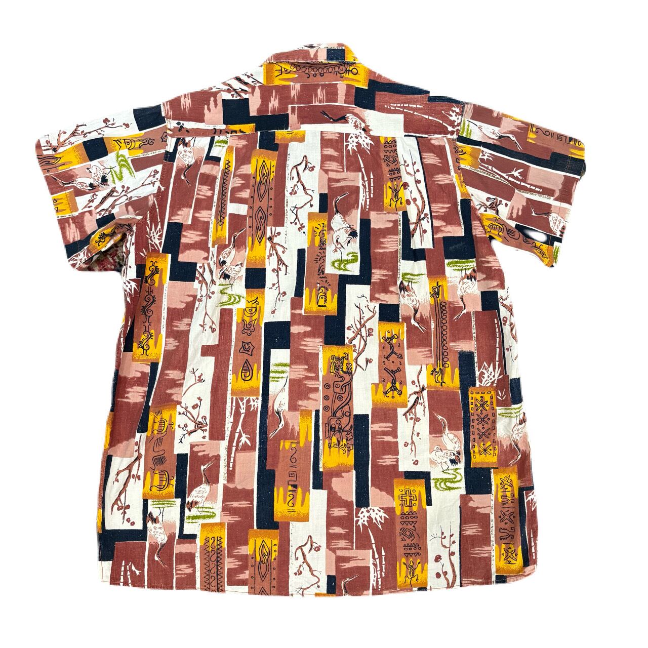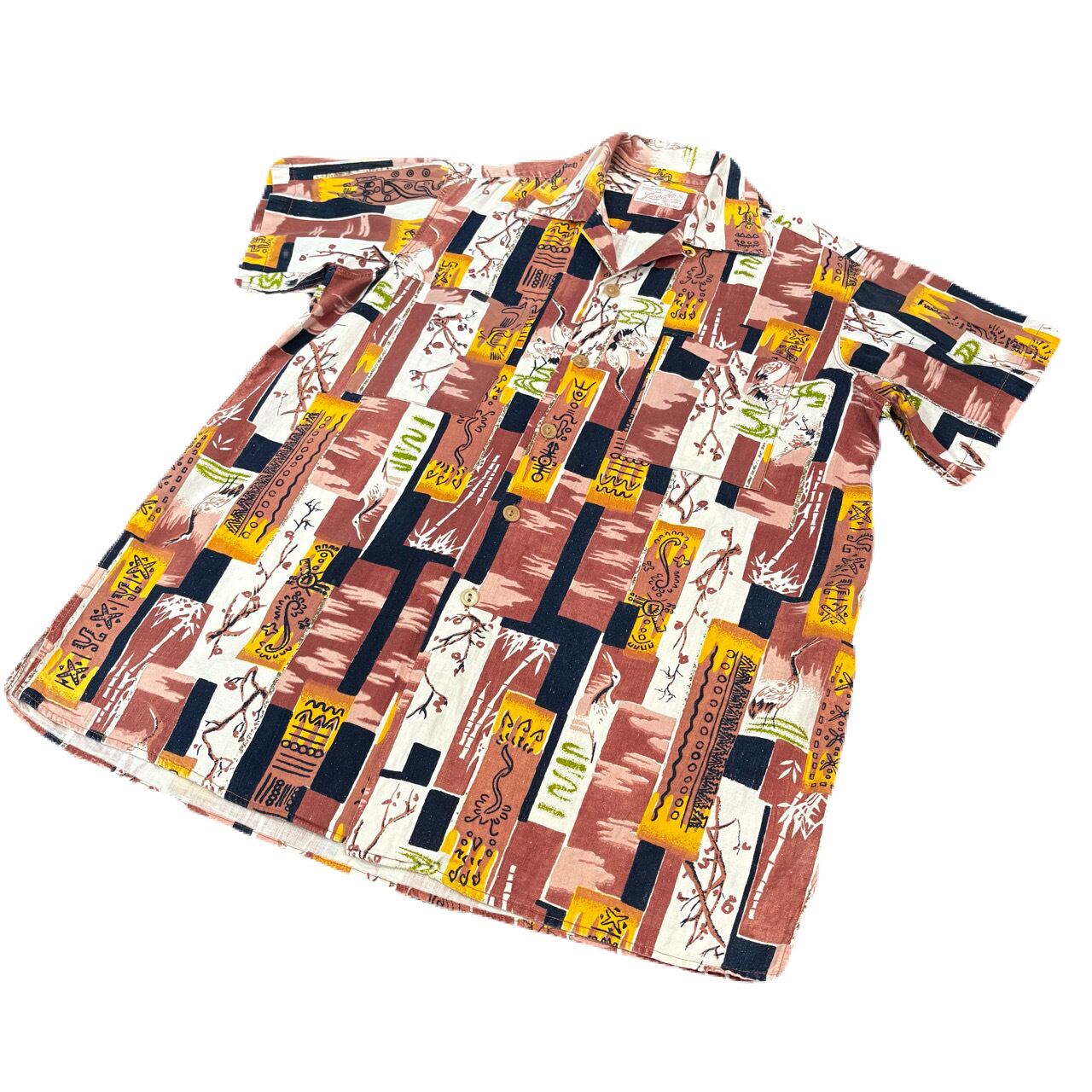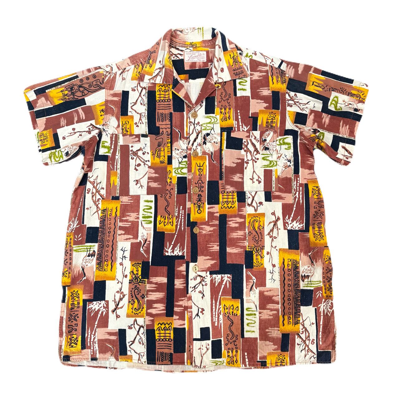 中華を感じるテキスタイルのオープンカラーシャツです。