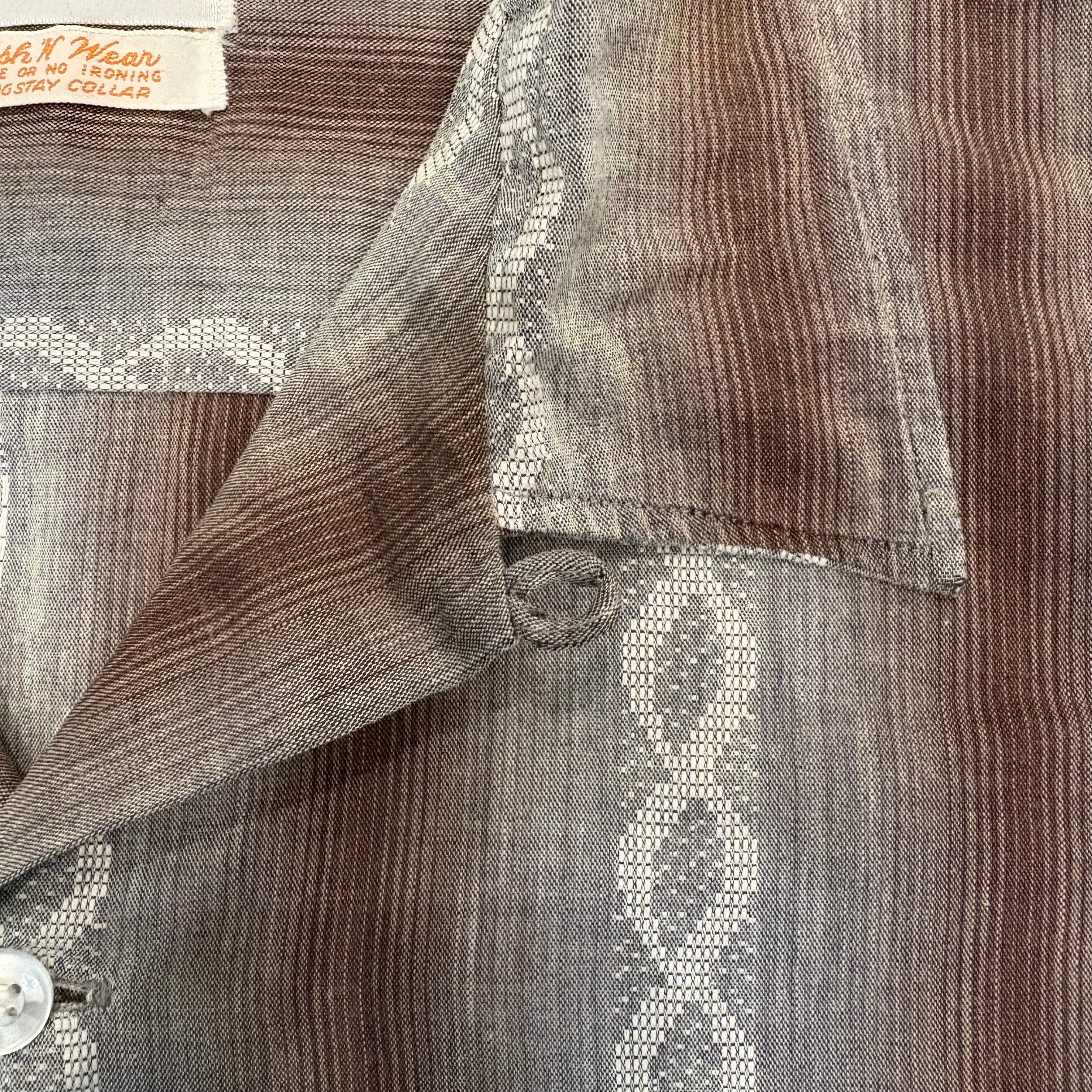 コットン地にシャドウストライプと織柄の入ったオープンカラーシャツです。