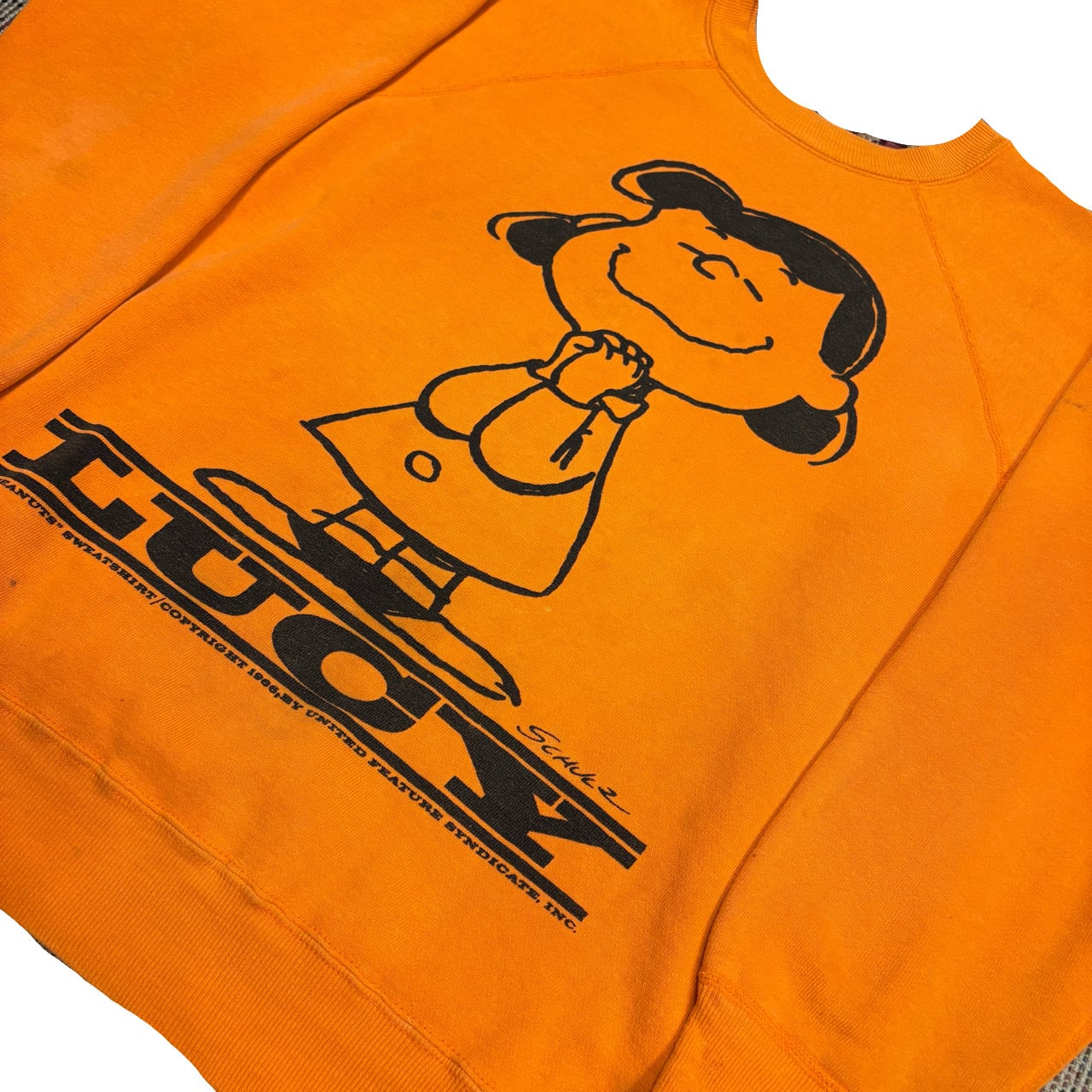 人気のピーナッツスウェット。背面ありの両面プリントタイプで、特筆すべきはサイズ表記XLとまだ色褪せが進んでいないコンディションかと思います。状態にこだわる方には間違いないです。