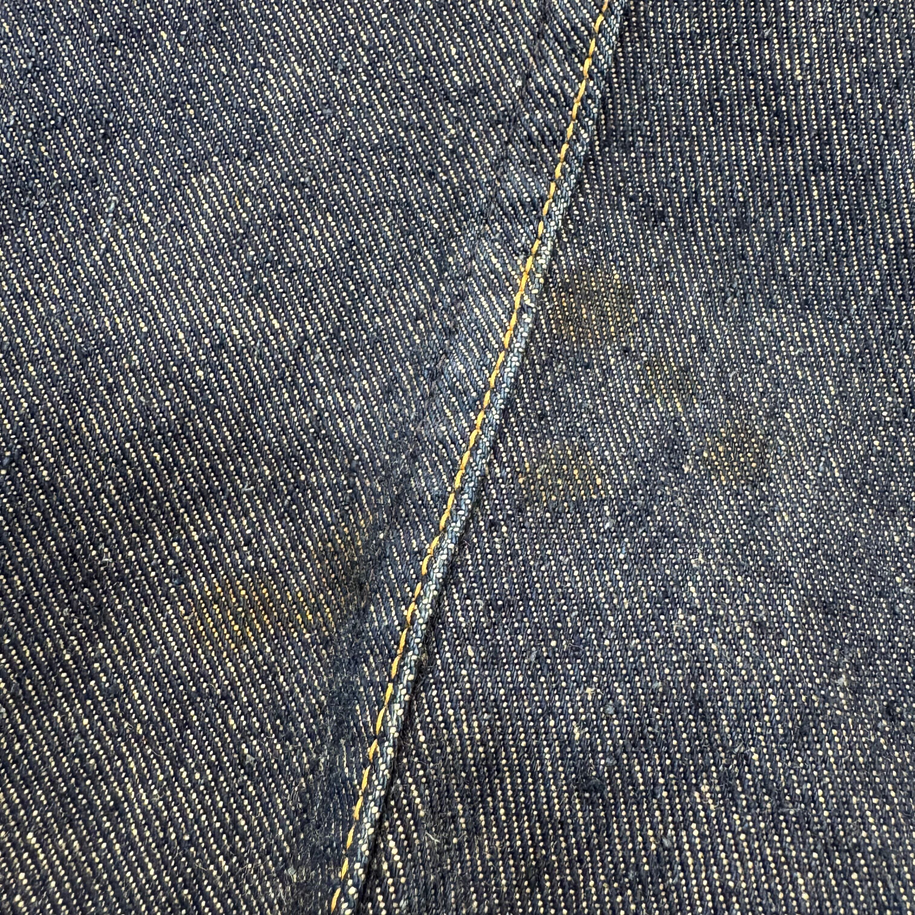 両足共に膝から裾にかけてサビ⁈汚れあり、塩ビのパッチが削れてます。