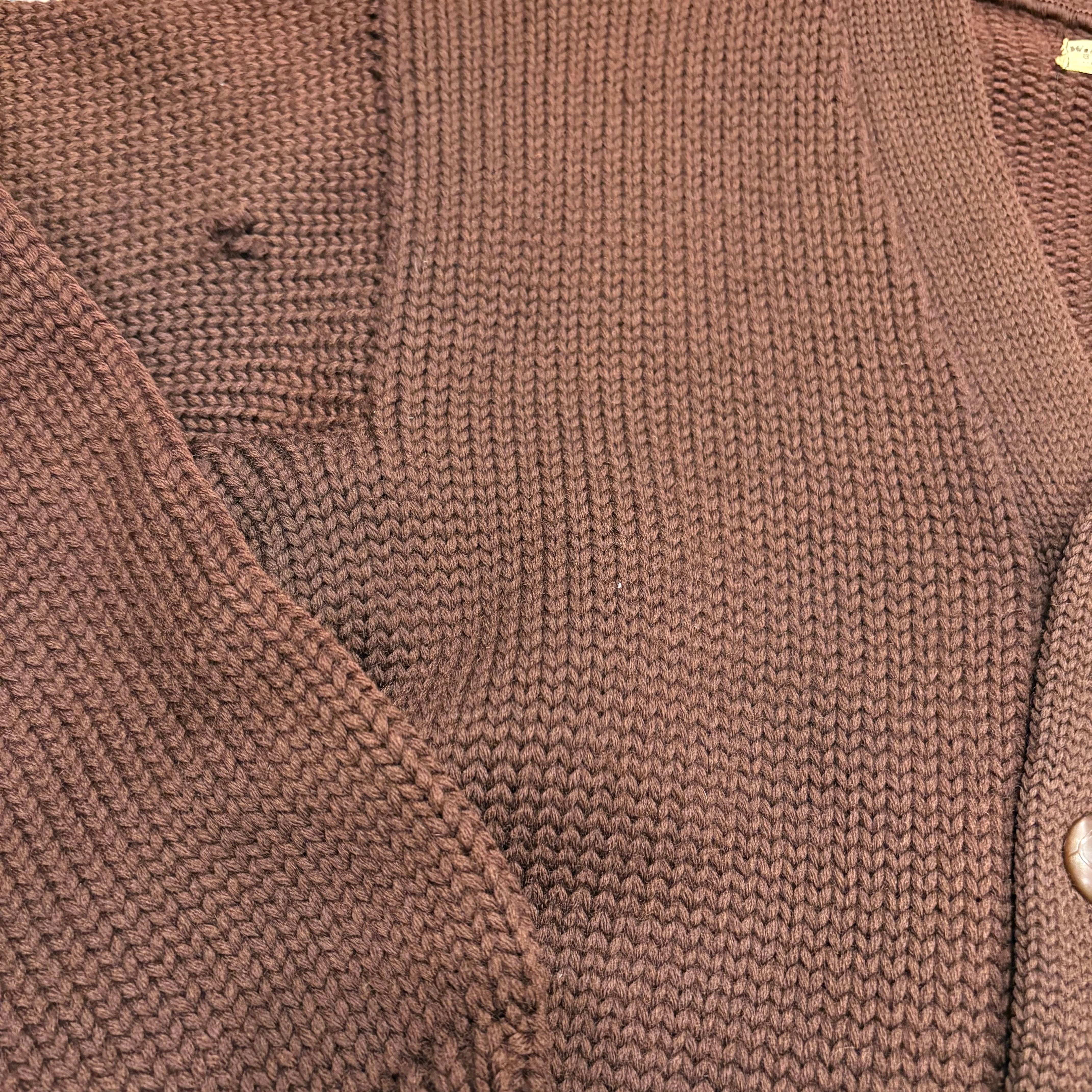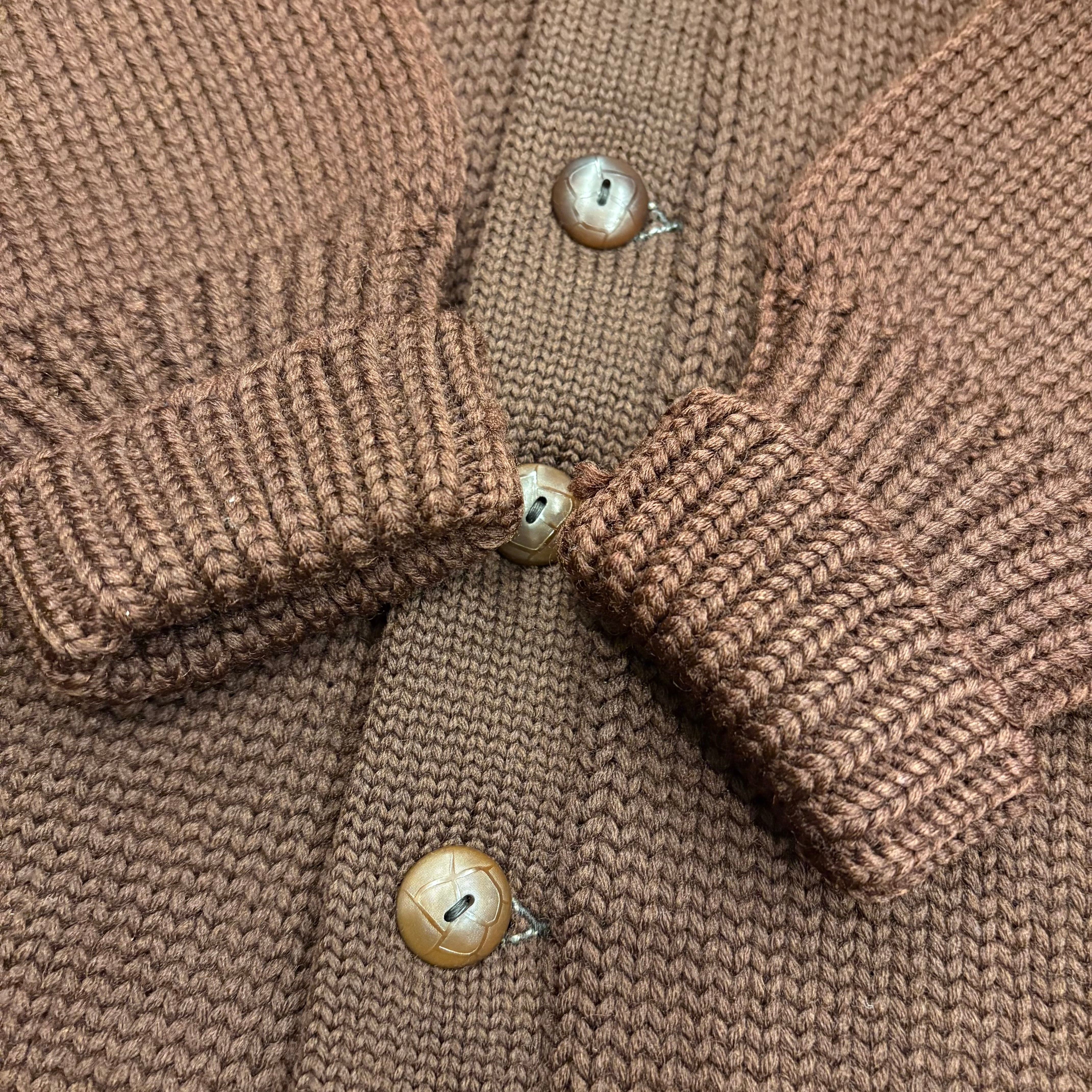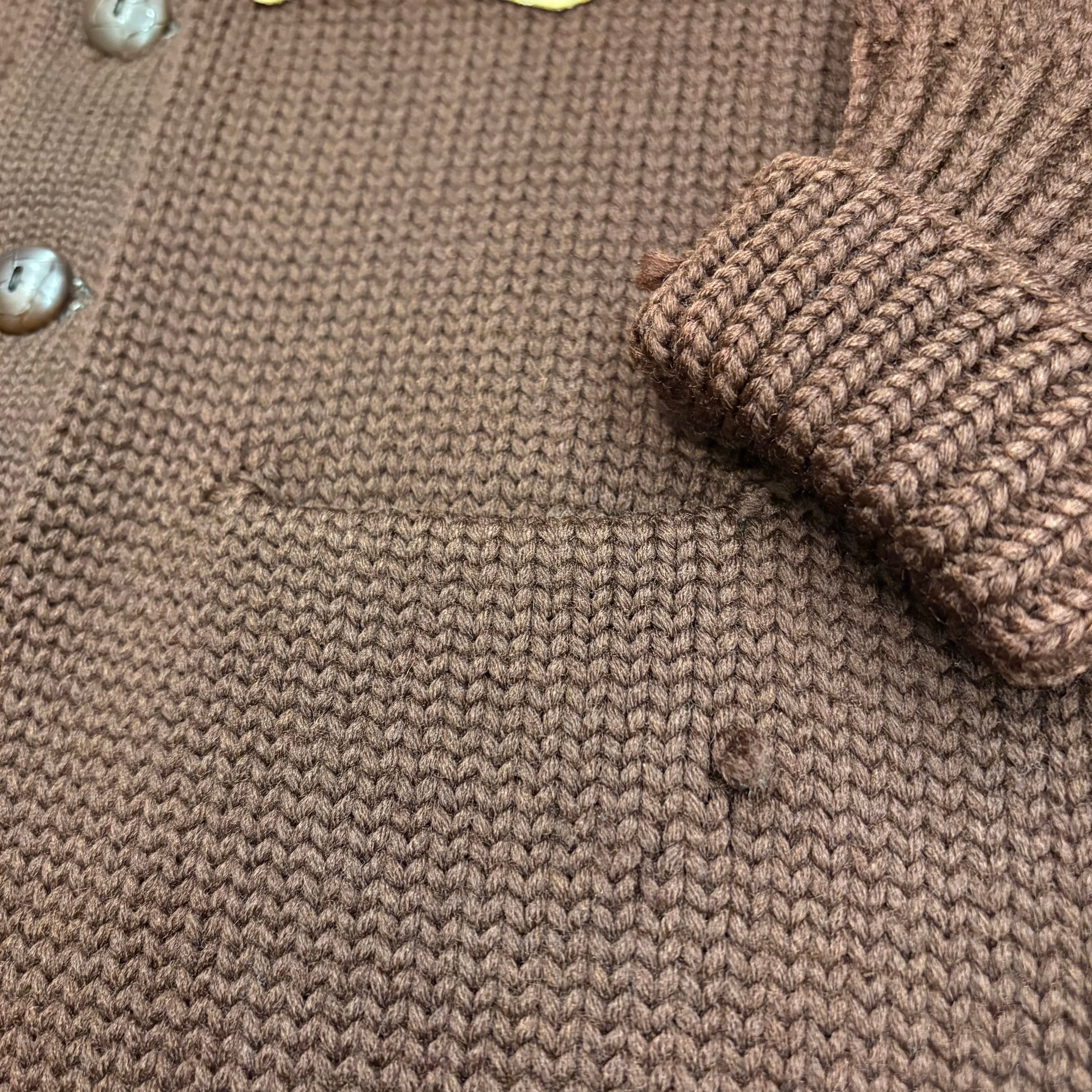 肉厚なローゲージ編み、模様入りの凝ったボタン、シンプルなシニール、出玉の少ないブラウンボディと、使いやすくバランス良いレタードかと思います。