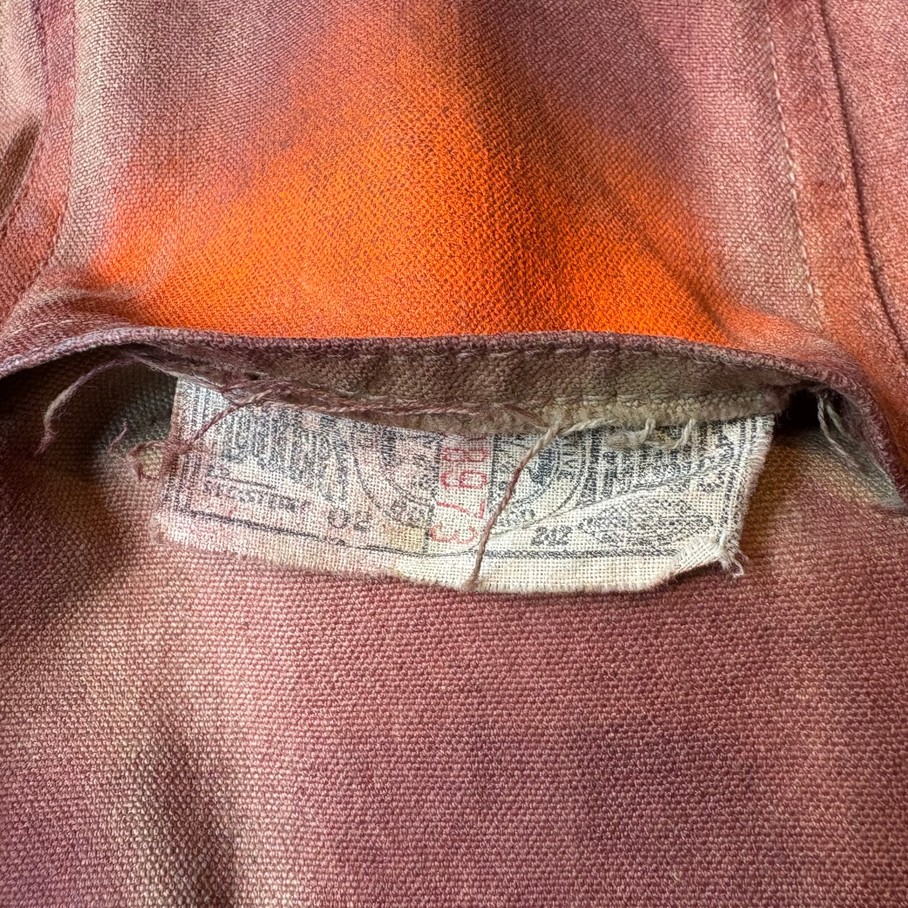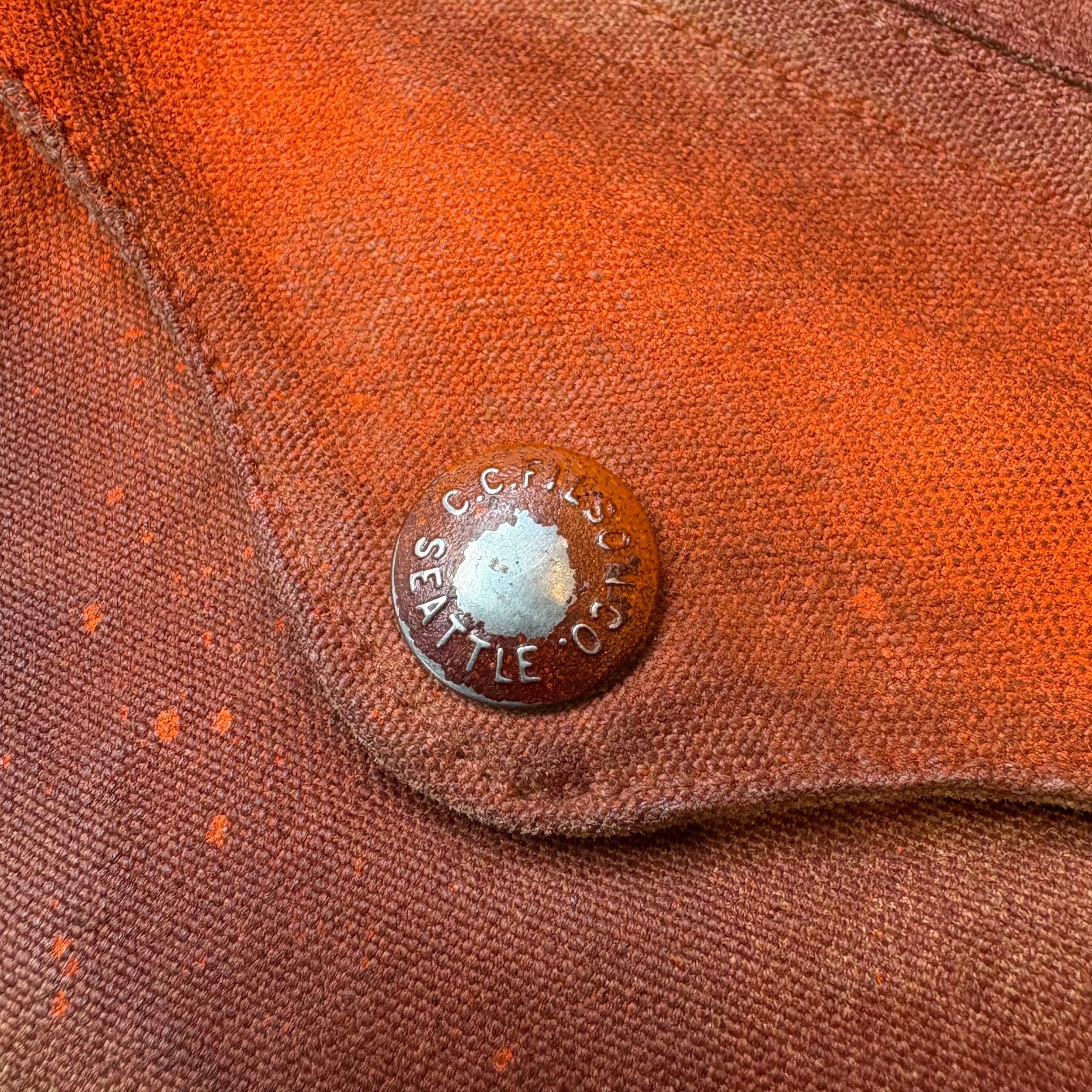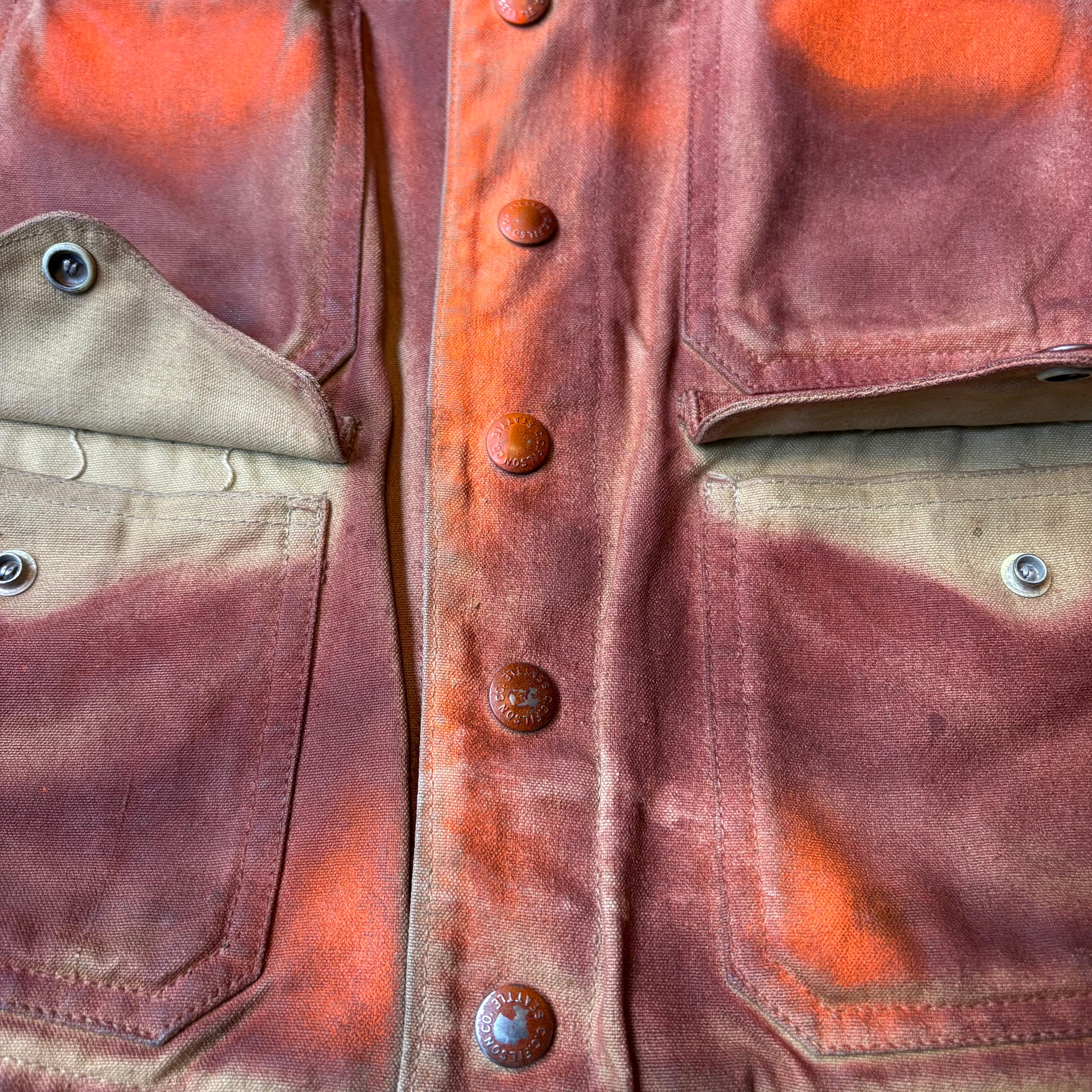 正確なことは分かり兼ねますが、刺繍のフィルソンズタグ・スチールスナップなどから、おおよそ50S頃の物かと思われます。セルフカスタムによる一点物でおすすめです。
