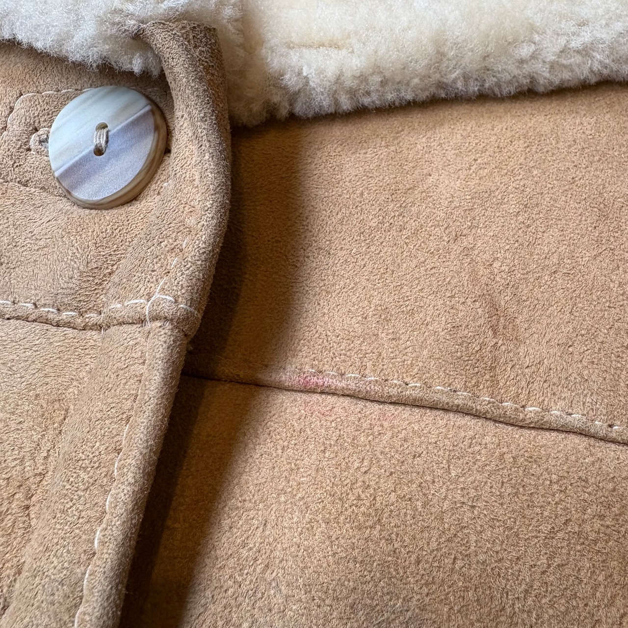所々に小さな汚れはありますが、タンカラーのムートンの中ではかなり綺麗な状態かと思います。