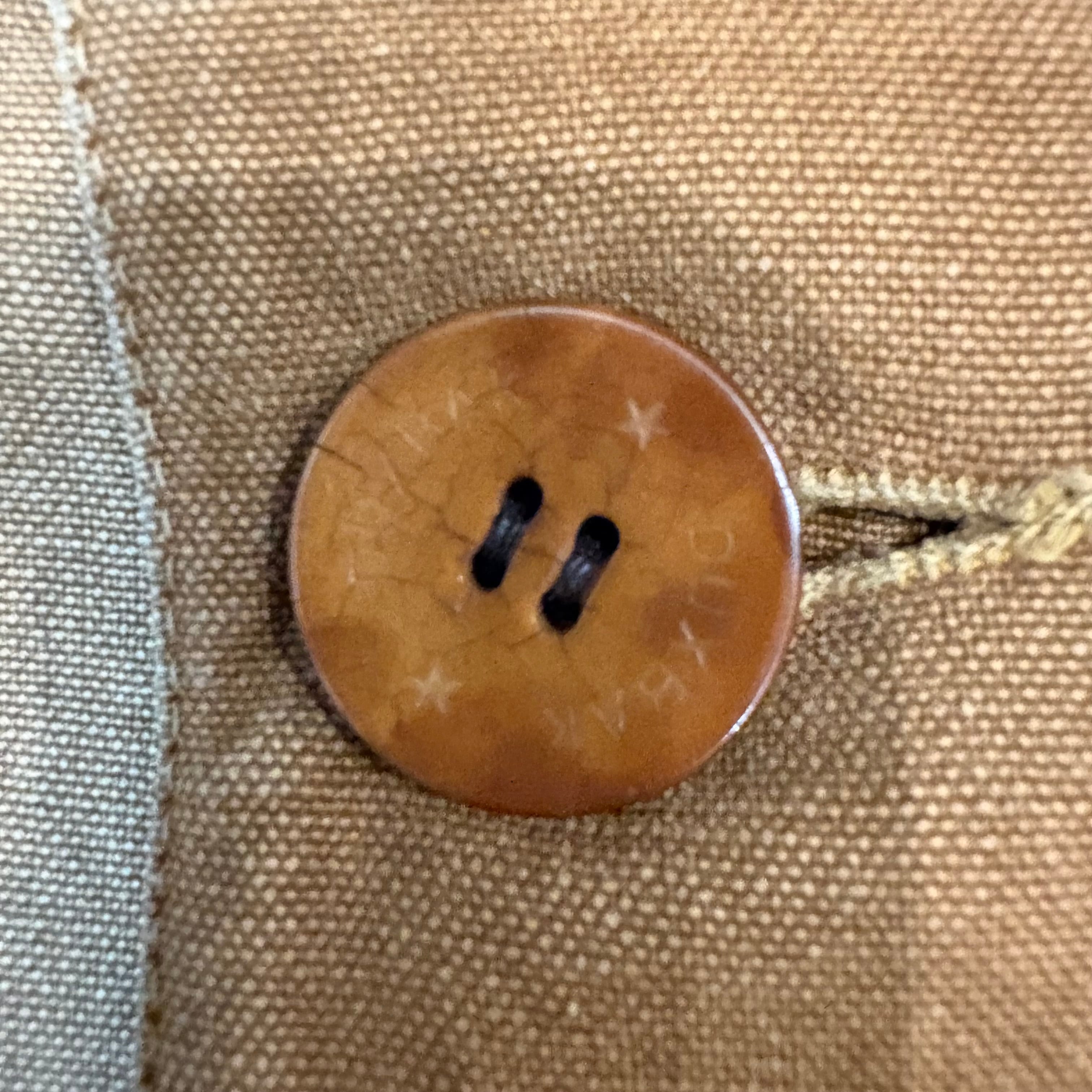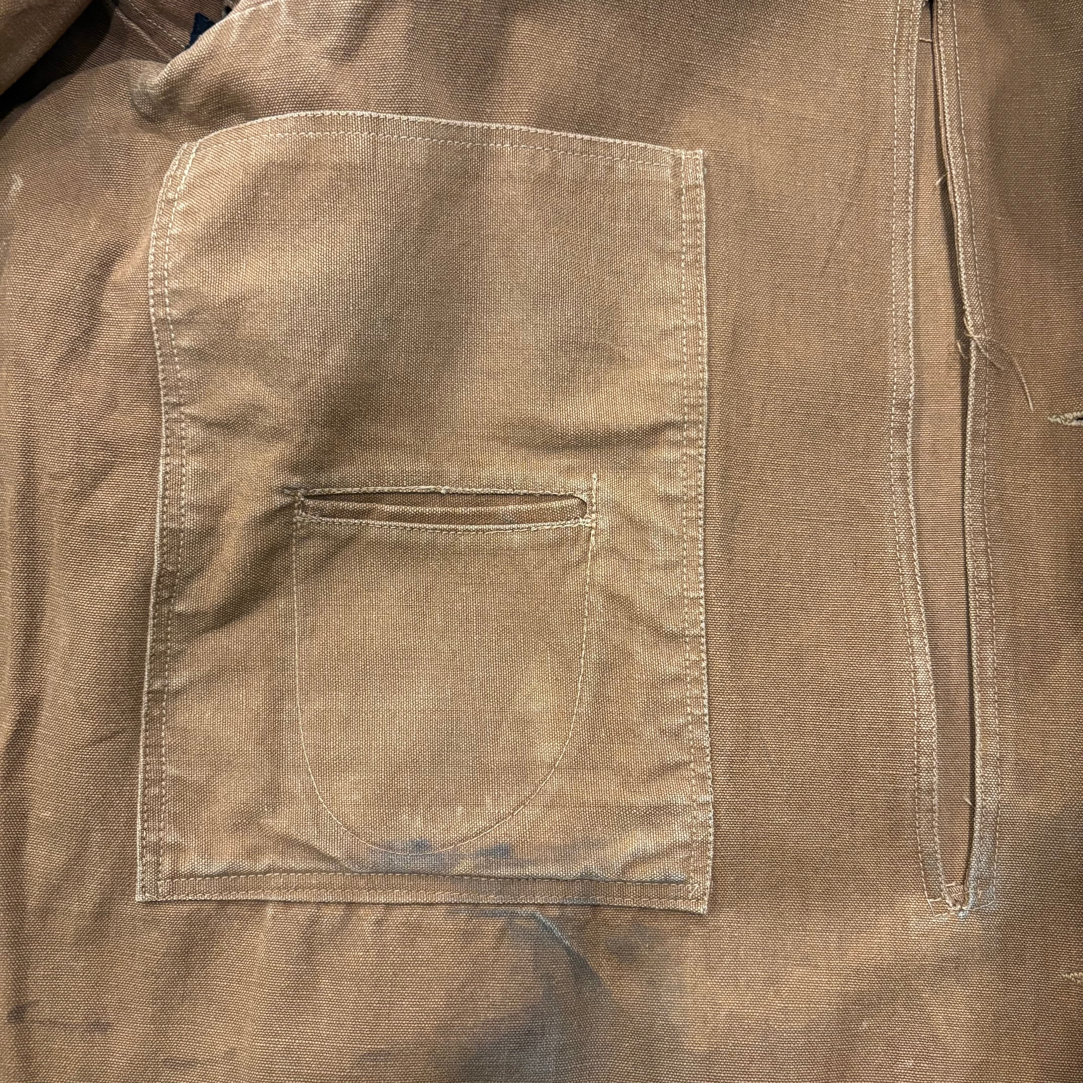 ガシッとした質感のダック地、後ろまで回り込むポケットとオールドならではの雰囲気があります。