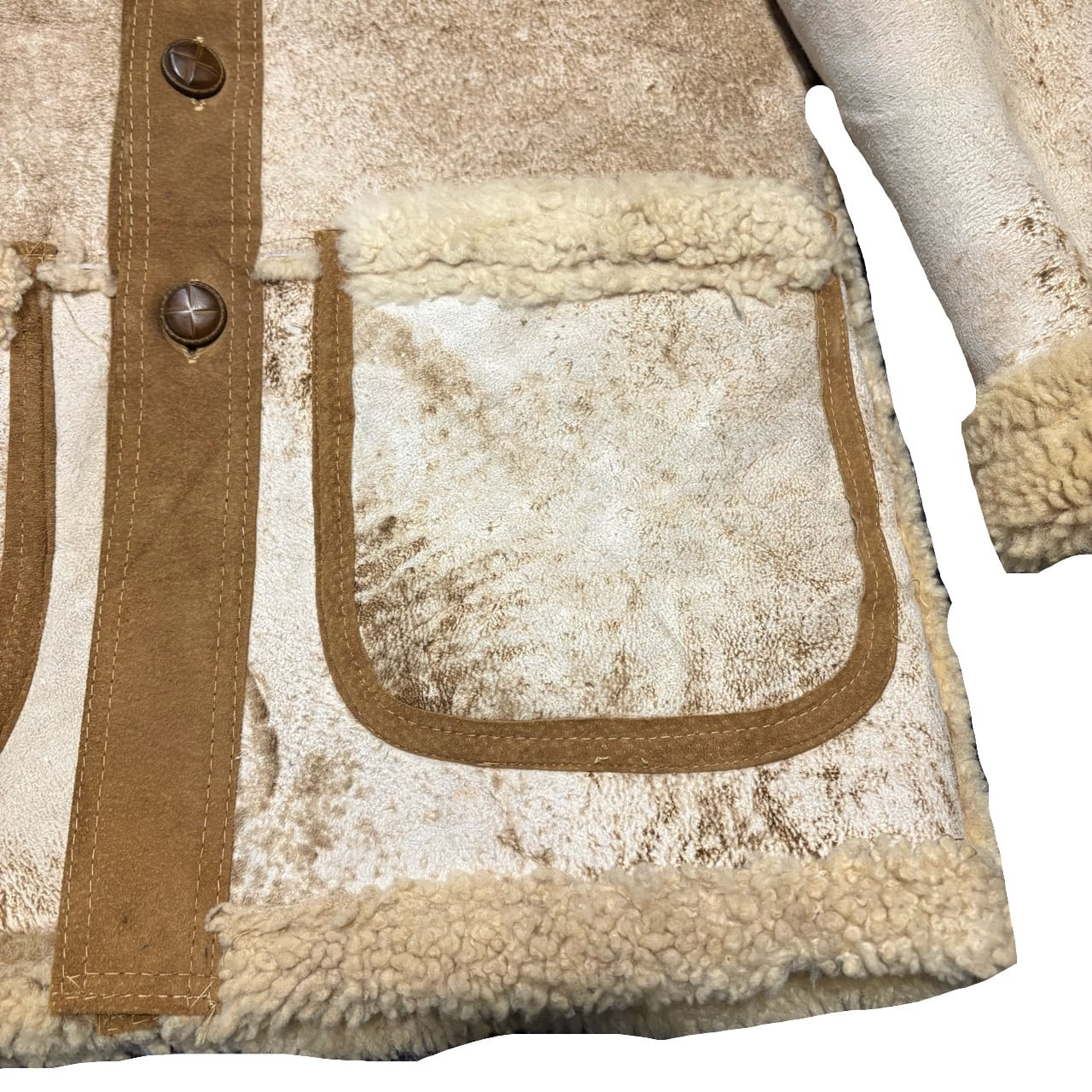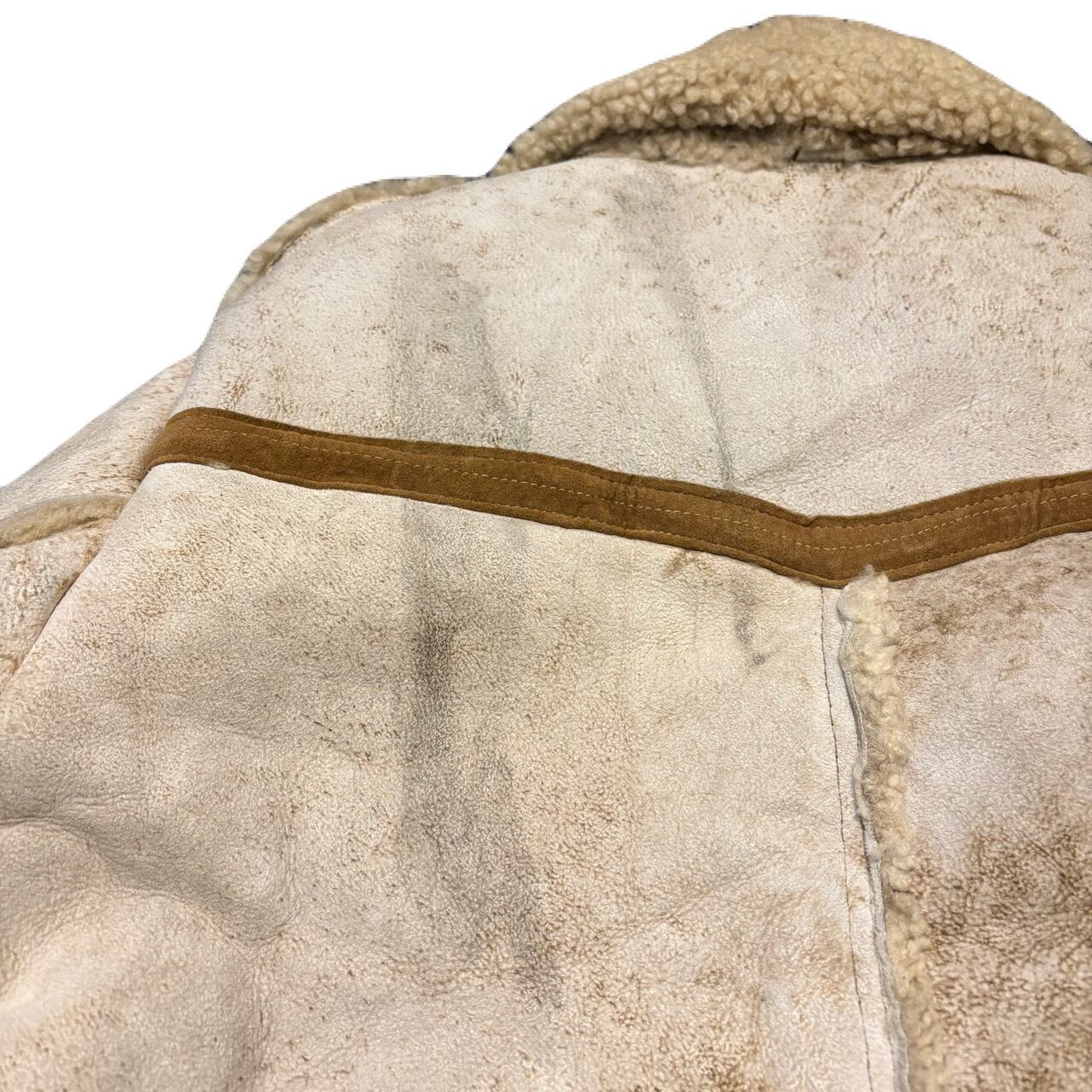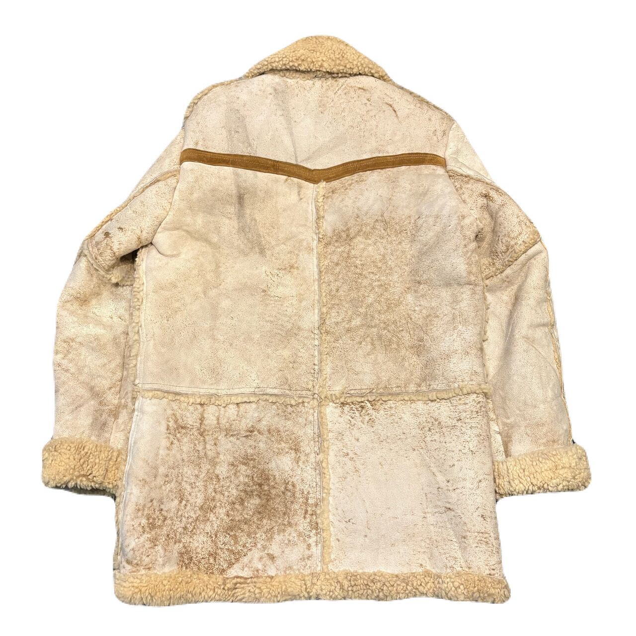 白のシープムートンにスエードの切り替えが効いたムートンコートになります。ムートンは新品だとかなり高額になりますので、ユーズドで探すべき代表格なアウターかと思います。厳選してますのでおすすめできます。