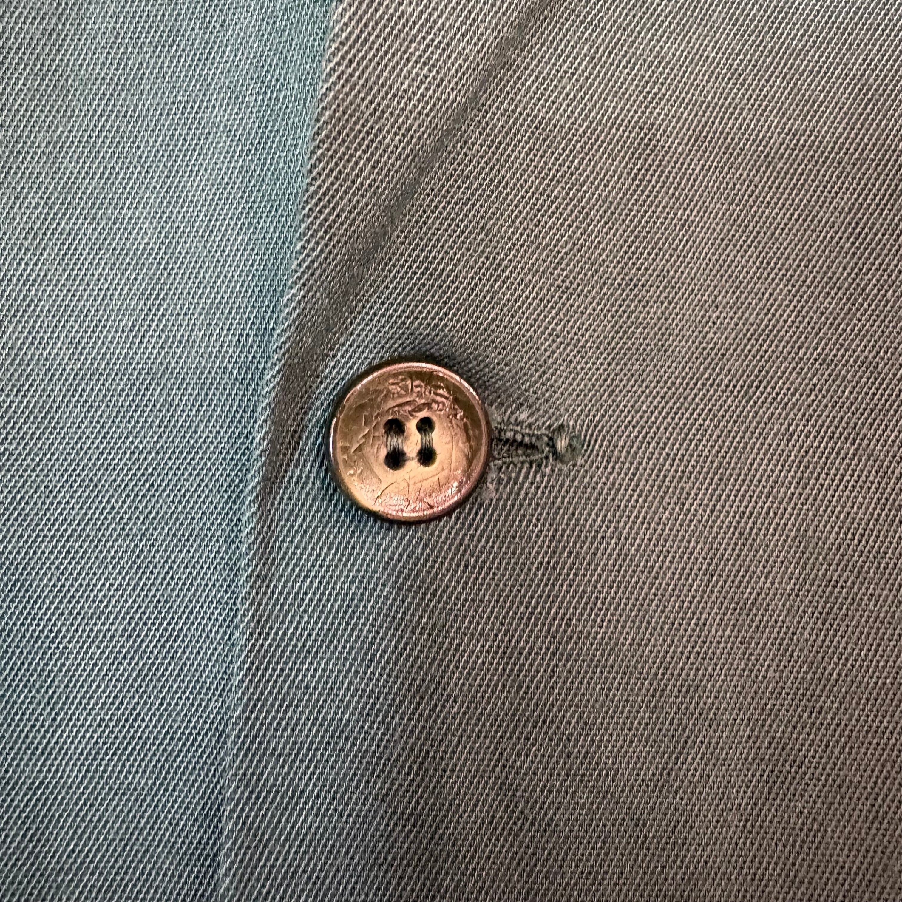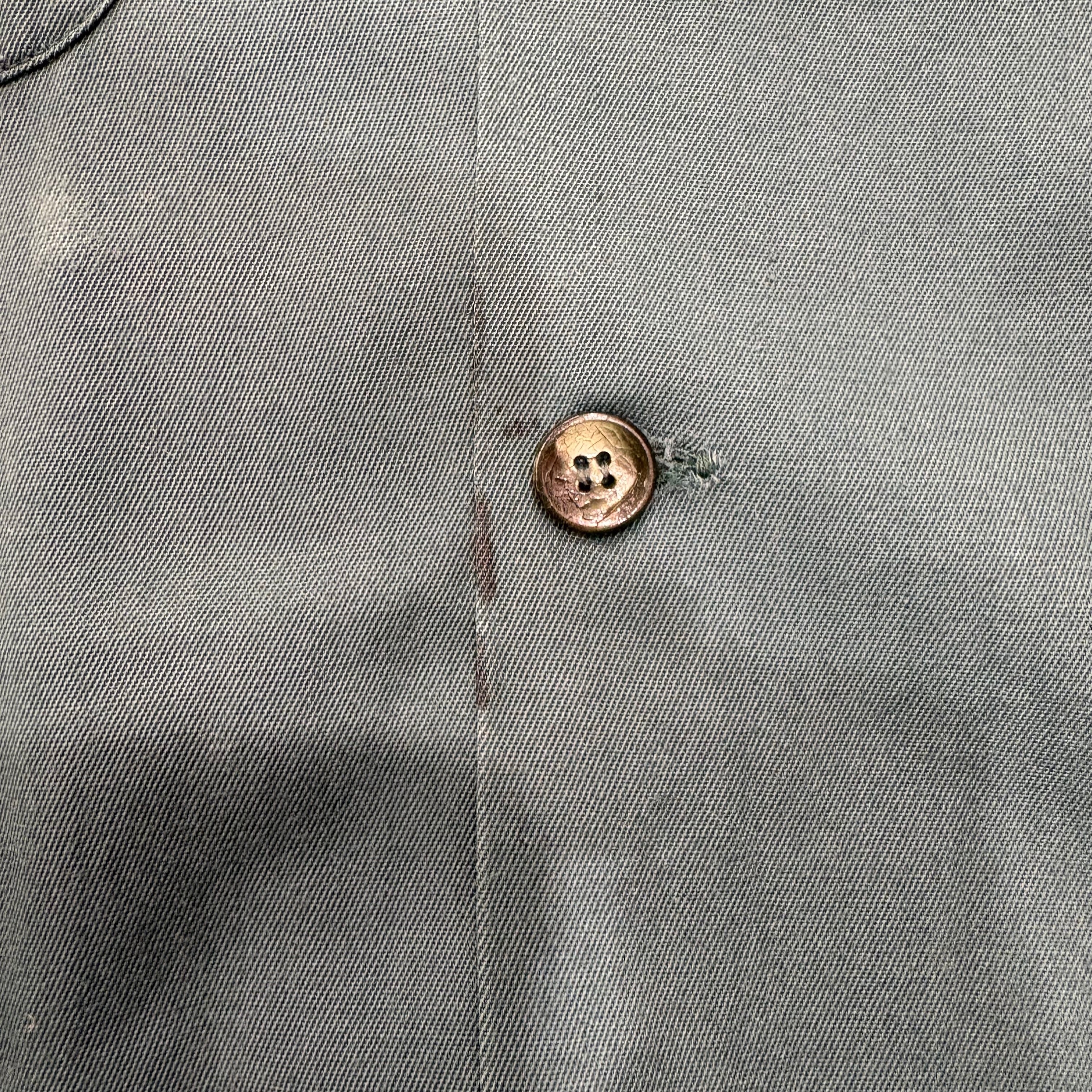 タグ欠損.左袖ハンドリペア.第二ボタン下リペア.右見頃ピンホール
