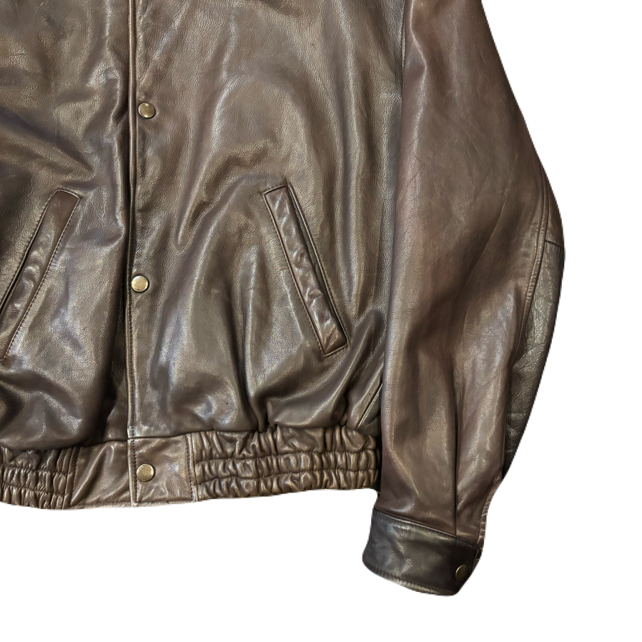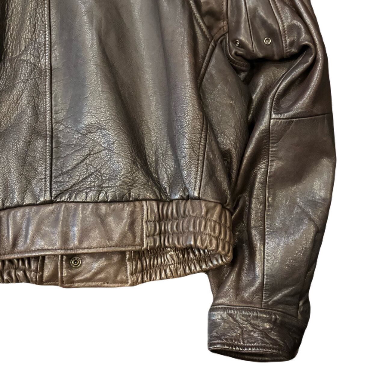 革質は柔らかさもありつつ厚みを感じる良好なレザー。身幅に余裕があるサイズなのである程度の体格に差がなく着用して頂けます。