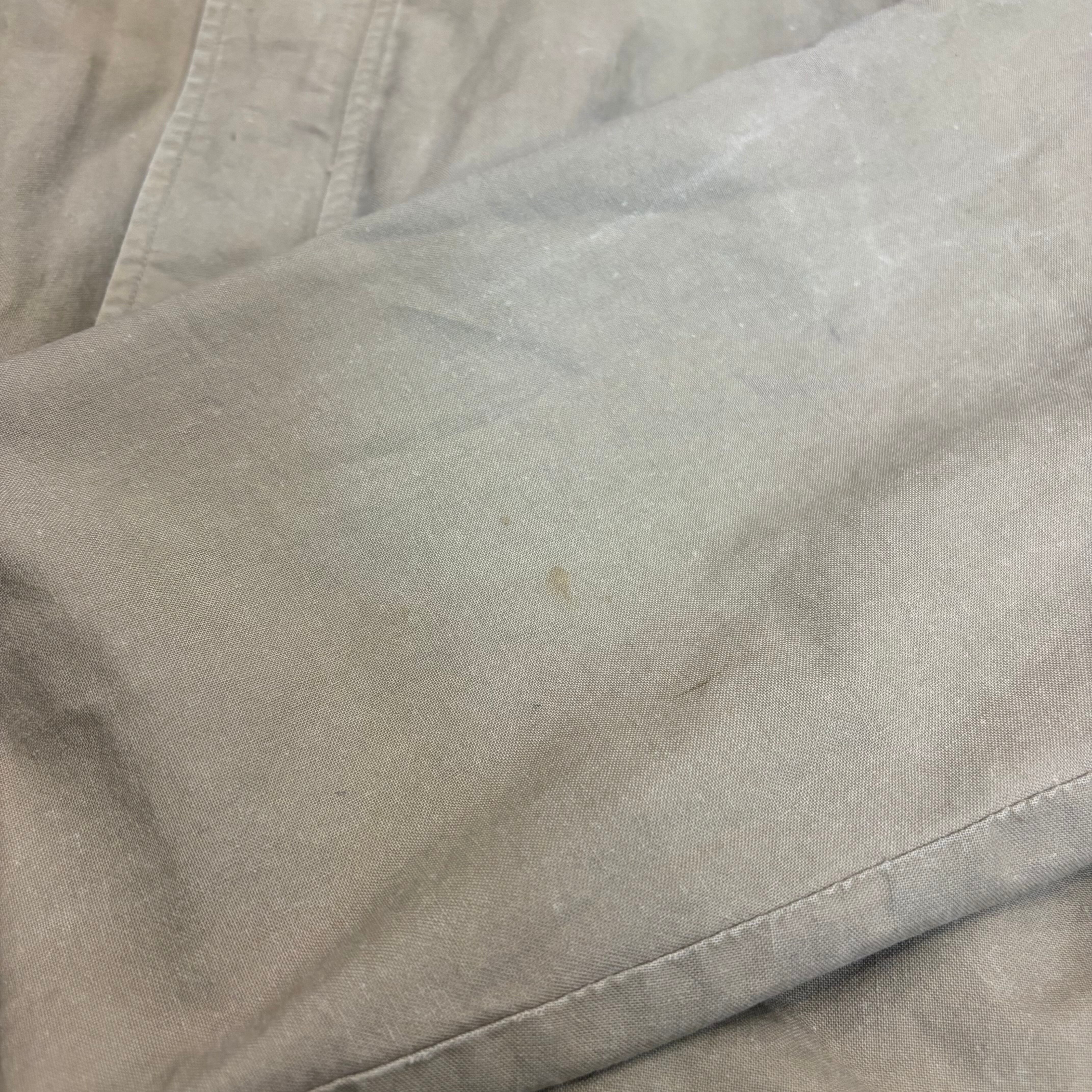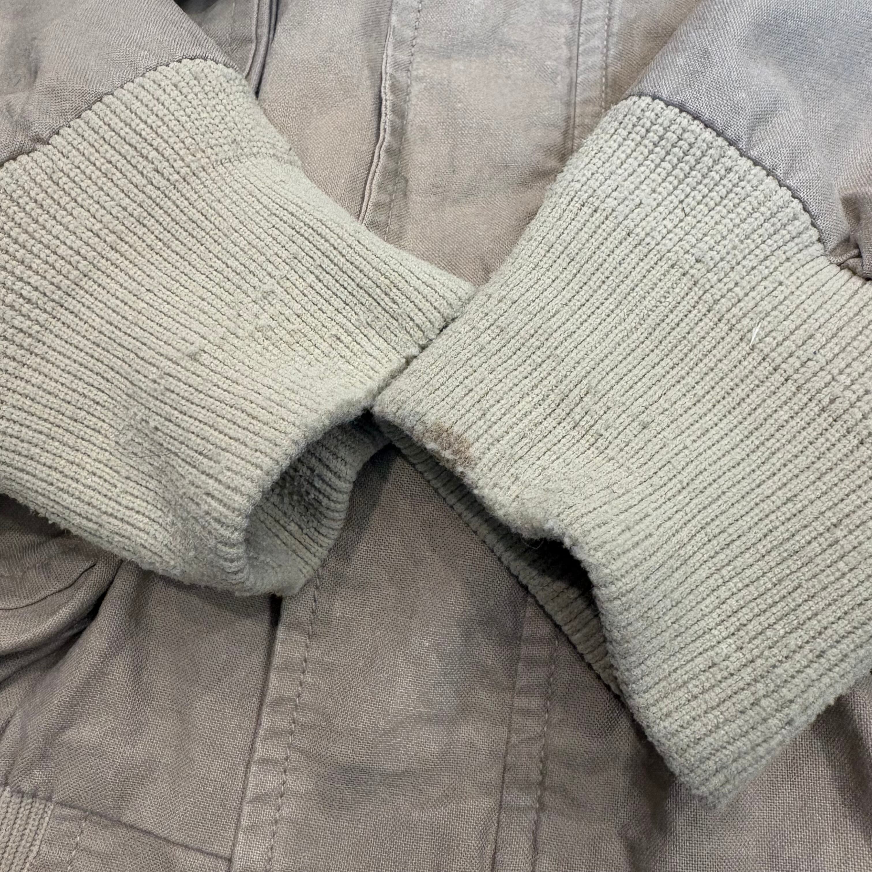 ミリタリーのA-2ジャケットのディテールを模したビーンの名作レザージャケットのコットンverになります。ザラっとしたムラのある生地感が春から初夏まで対応してくれます。シンプルなので合わせる服にも困らない便利服かと思います。