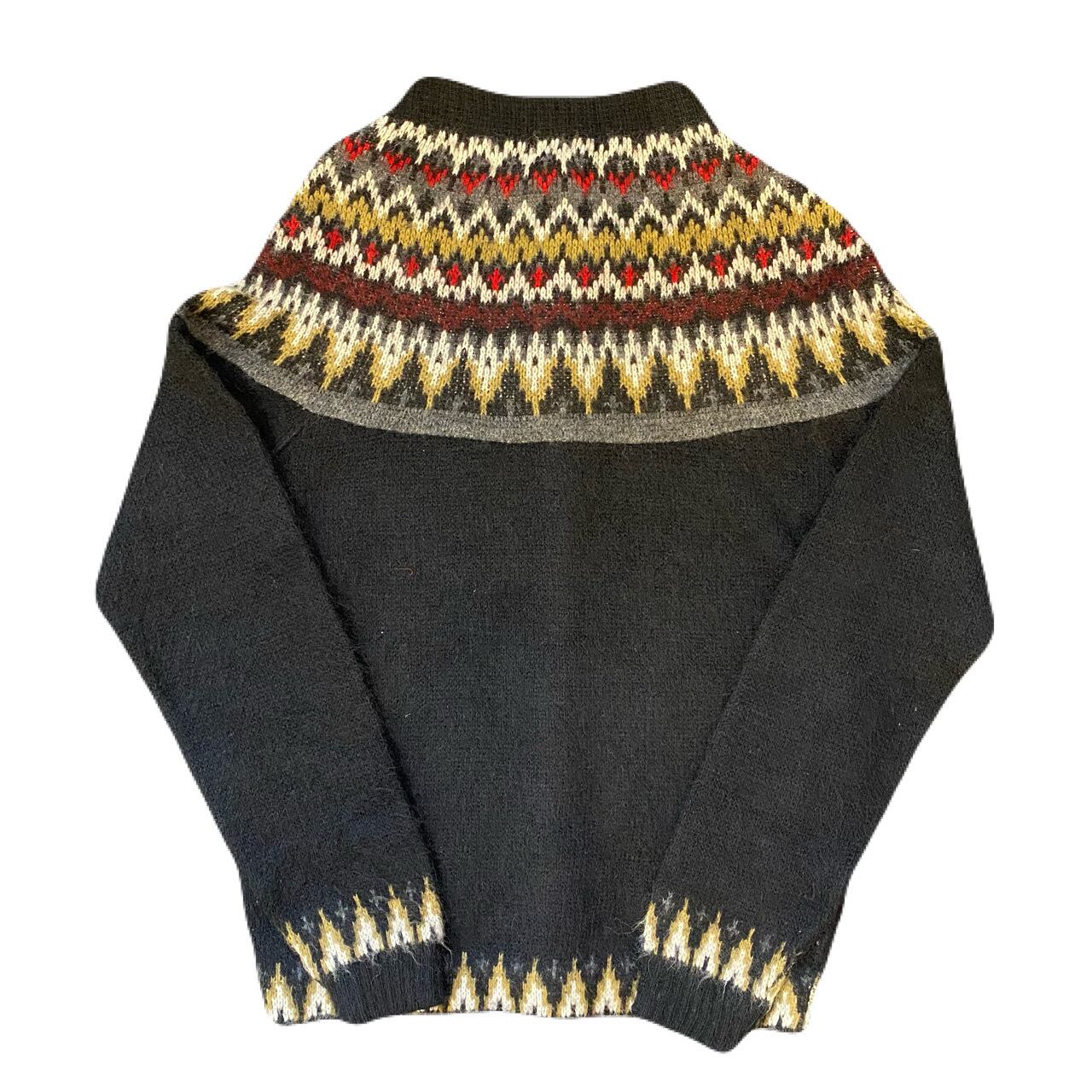 着れる方が羨ましい黒ベースのモヘアカーデ。ノルディックパターンが珍しいです。
